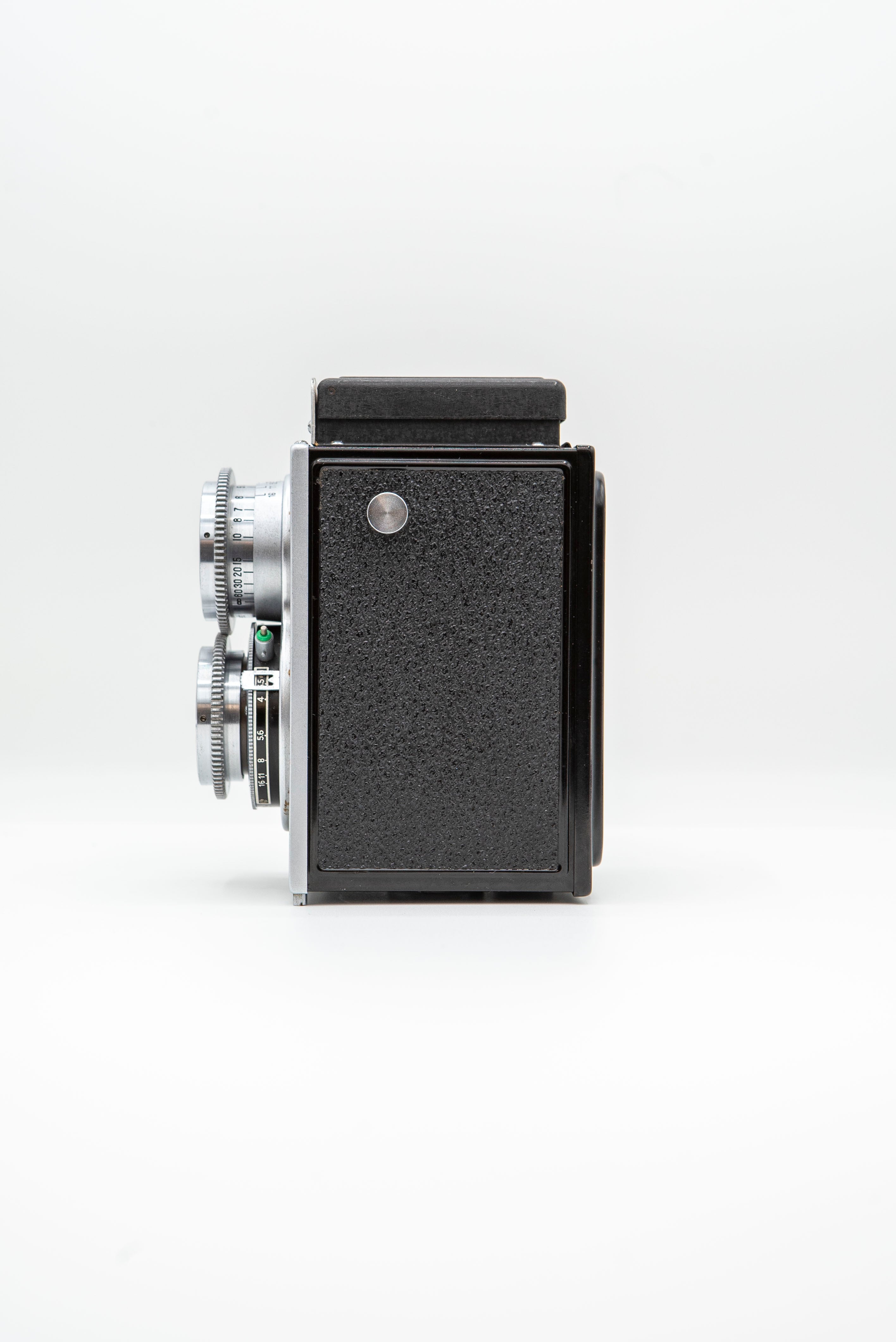 すごくシンプルな構造でできたカメラで、他の二眼レフカメラと違ってファインダーレンズの焦点調節をギアの噛み合わせで連動するシステム。